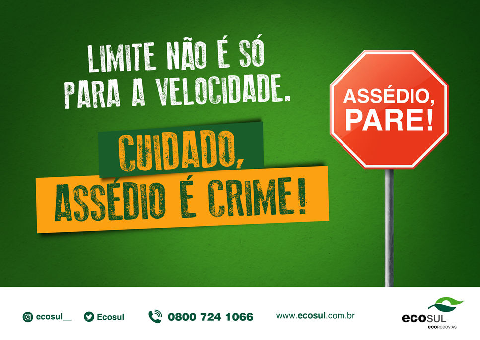Nosso trabalho em parceria com a Ecosul foi criar uma campanha contra o assédio recorrente que as mulheres que atuam nas praças de arrecadação sofriam. Palavras, gestos e ameaças faziam parte do cotidiano, trazendo insegurança e insatisfação.
